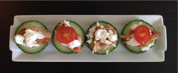 But not as cheap and easy as the cucumber starters I made to accompany the sandwich. I couldn’t find a way to fit vegetables under the eggs benedict without potentially popping my jaw trying to eat it, so I made these cute and delicious cucumber bites: